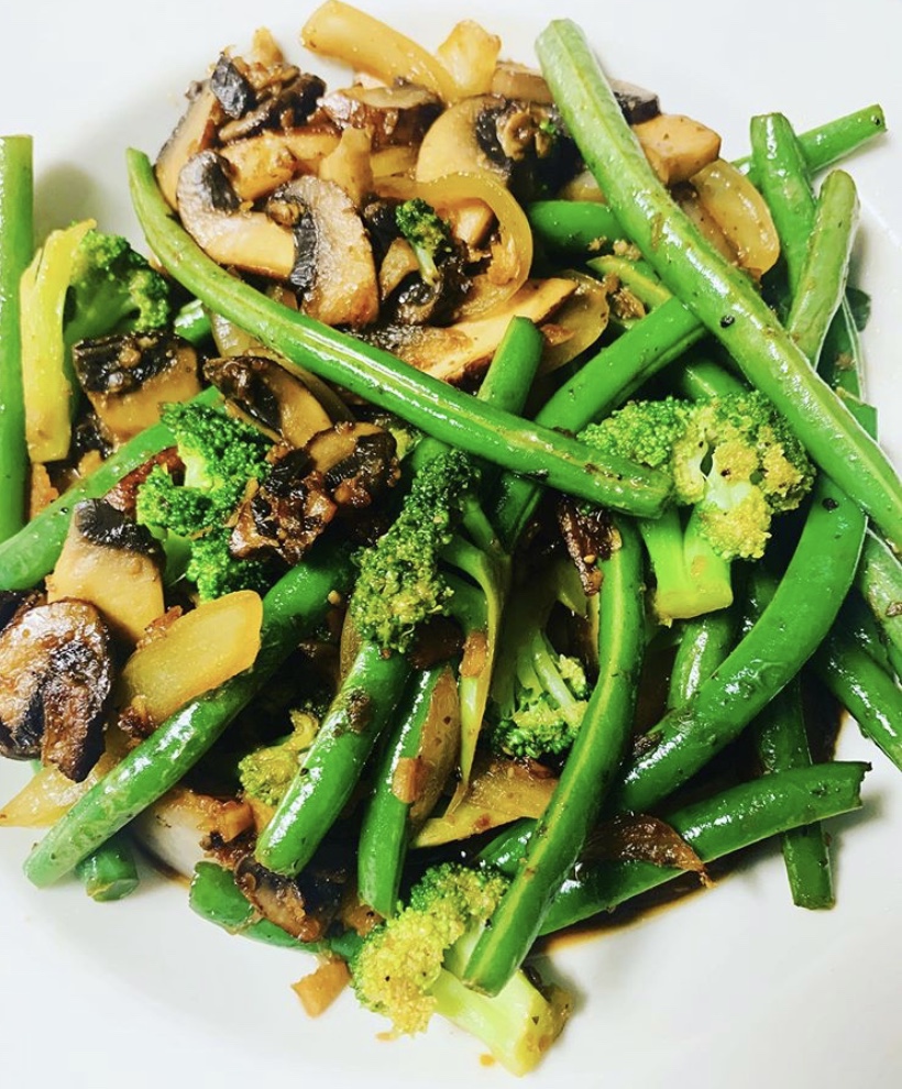Clean broccoli and beans. Chop onions and mince garlic and ginger. Pour oil in pan, enough to cover the bottom. Once hot place ginger, onion, and garlic in the pan until it becomes fragrant. Pour remaining vegetables inside now. Sprinkle (to taste) Natures Seasoning. Allow vegetables to now sauté. You don’t want to over cook and your veggies are mushy. I still enjoy a bit of a bite to mines. About 2 minutes before done, pour in the soy sauce and Teriyaki marinade. Plate it up and dig in.